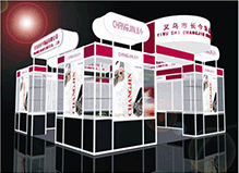 ![]() 其特點是型材和木質(zhì)結(jié)構(gòu)相結(jié)合。設(shè)計旨在以展具的形式美和材質(zhì)美來襯托產(chǎn)品。其效果新穎美觀。 Booth set up with aluminium alloy frame material and wood;Both advantages of the two kinds of materials are jointly taken to meet the edmands of the clients. |